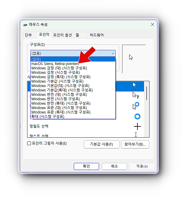2. 마우스 포인터 아이콘(모양) 변경하기